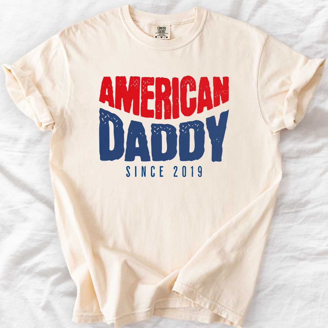 Ideal for dads, especially those celebrating special milestones. This thoughtful gift is perfect for Father's Day, family gatherings, or simply to show love and appreciation. Featuring the heartwarming phrase "American Daddy Since 2019," this t-shirt is a must-have addition to any proud American dad’s wardrobe.