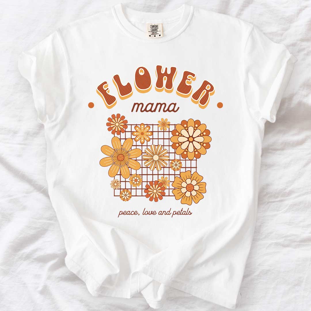 Peace, love, and petals 🌼 This soft, vintage-wash Comfort Colors® tee features the groovy “Flower Mama” design with retro blooms and warm, earthy tones. Perfect for moms who love nature, positivity, and a touch of 70s flair.