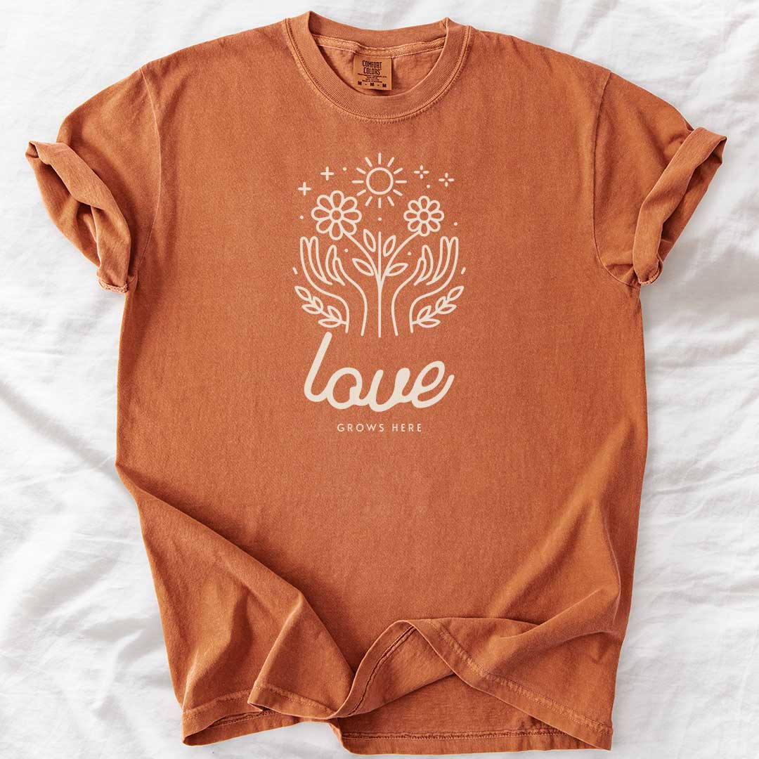 Simple, fresh, and full of heart š±āØ This soft, vintage-wash Comfort ColorsĀ® tee features the uplifting āLove Grows Hereā design with blooming flowers, sunshine, and a clean, minimal look.