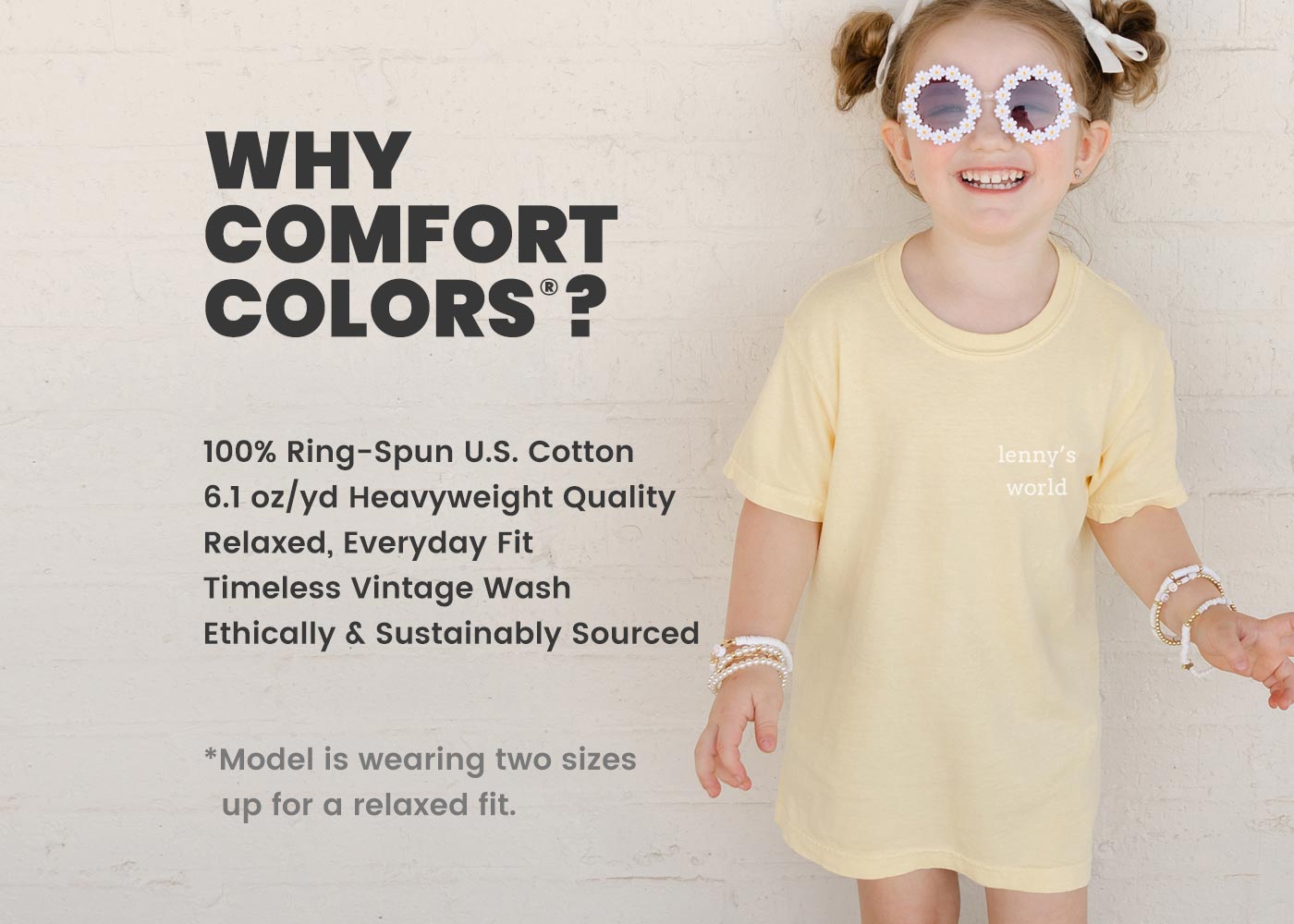 We use quality Comfort Colors® tees for kids — soft-washed and comfy from the very first wear. Perfect for playground takeovers, family days, or just chilling at home.