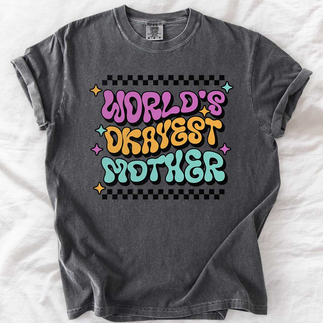 For the mom who’s doing her best — and that’s more than okay 🌈 The World’s Okayest Mother tee brings humor and honesty together in one colorful retro design.